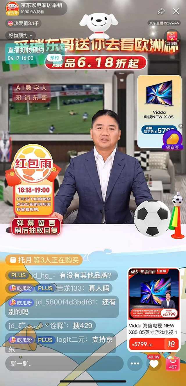 媒體報(bào)道劉強(qiáng)東AI數(shù)字人首場(chǎng)直播:不到1小時(shí)觀看量超2000萬,整場(chǎng)成交額超5000萬!