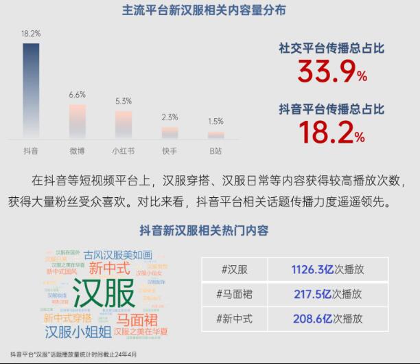 6月25日,在中國服裝協(xié)會支持下,北京大學(xué)匯豐商學(xué)院創(chuàng)新創(chuàng)業(yè)中心和知微研究院聯(lián)合發(fā)布《新漢服產(chǎn)業(yè)網(wǎng)絡(luò)平臺發(fā)展研究(2024)》報告。報告重點闡述了抖音等網(wǎng)絡(luò)平臺對新漢服產(chǎn)業(yè)興起、轉(zhuǎn)型和發(fā)展的賦能作用,指出短視頻平臺不僅推動了漢服文化的復(fù)興浪潮,還通過直播電商推動新漢服從小眾市場向產(chǎn)業(yè)帶轉(zhuǎn)化,形成產(chǎn)業(yè)集聚效應(yīng),帶動區(qū)域經(jīng)濟(jì)蓬勃發(fā)展。