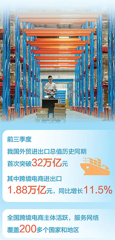 海關(guān)總署不久前發(fā)布的數(shù)據(jù)顯示:今年前三季度,我國(guó)外貿(mào)進(jìn)出口總值歷史同期首次突破32萬(wàn)億元,其中跨境電商進(jìn)出口1.88萬(wàn)億元,同比增長(zhǎng)11.5%。作為以科技創(chuàng)新為驅(qū)動(dòng),積極運(yùn)用新技術(shù)、適應(yīng)新趨勢(shì)、培育新動(dòng)能的外貿(mào)新業(yè)態(tài)新模式,跨境電商已經(jīng)成為我國(guó)外貿(mào)發(fā)展的有生力量,為全球消費(fèi)者提供了更多元化的購(gòu)物選擇。