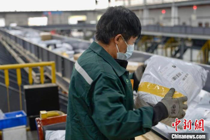 義烏某快遞點(diǎn)的工作人員分揀電商包裹。(資料圖)董易鑫 攝