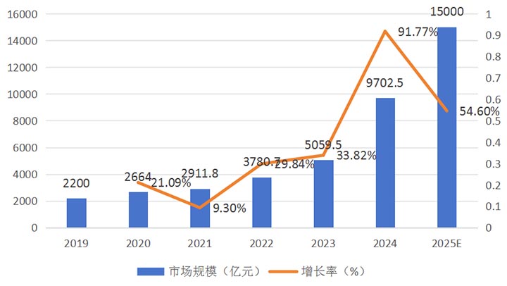 其次,作為我國戰(zhàn)略性新興產(chǎn)業(yè),低空經(jīng)濟(jì)有望成為促進(jìn)經(jīng)濟(jì)發(fā)展的新增長點。據(jù)中國民航局、中商產(chǎn)業(yè)研究院數(shù)據(jù)顯示,2024年低空經(jīng)濟(jì)的市場規(guī)模達(dá)到9702億元,預(yù)計到2025年市場規(guī)模將達(dá)到15,000億元。其中,無人機(jī)配送作為低空經(jīng)濟(jì)重要的應(yīng)用場景,市場空間廣闊。