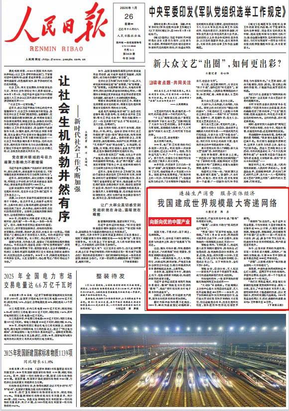媒體報(bào)道人民日?qǐng)?bào):我國(guó)建成世界規(guī)模最大寄遞網(wǎng)絡(luò)(向新向優(yōu)的中國(guó)產(chǎn)業(yè))