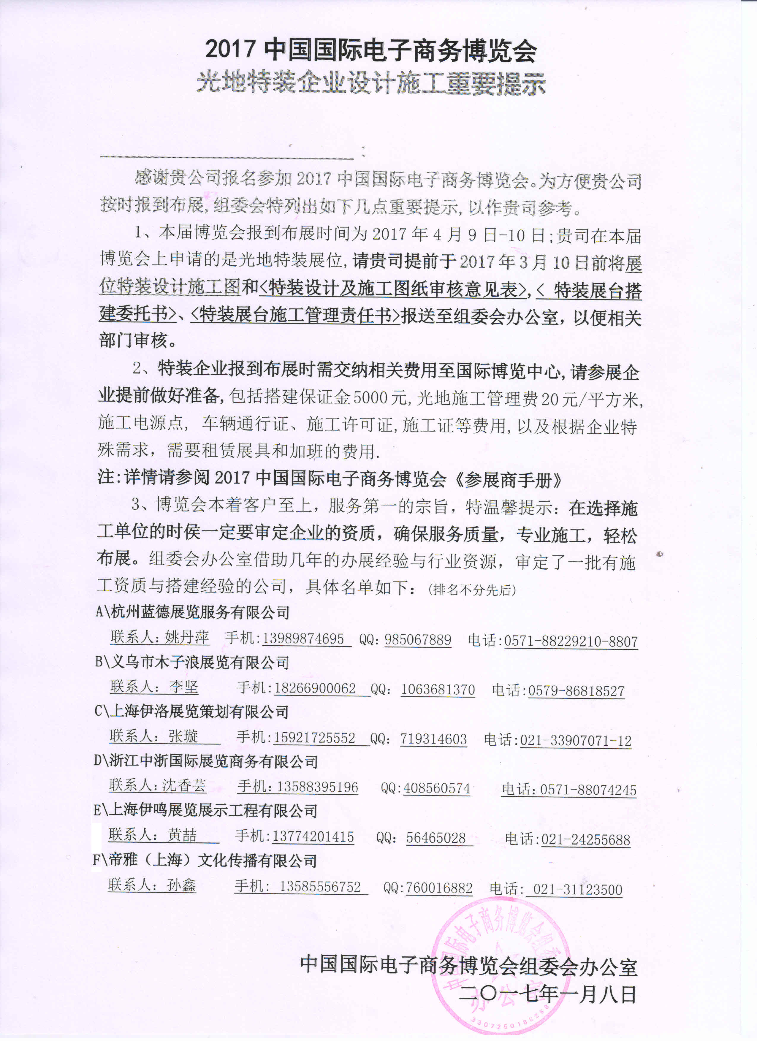 2017中國國際電子商務博覽會指定搭建商及光地特裝企業(yè)設計施工重要提示